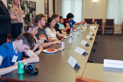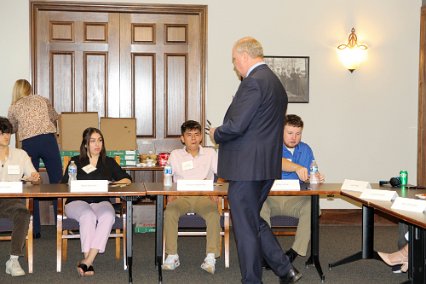 The Executive Roundtable Discussion is a chance for high potential freshmen to participate in an interactive discussion with Dr. Will on the topic of "Why Business Majors are Evil." Students were asked to provide input based on personal experiences as business majors.